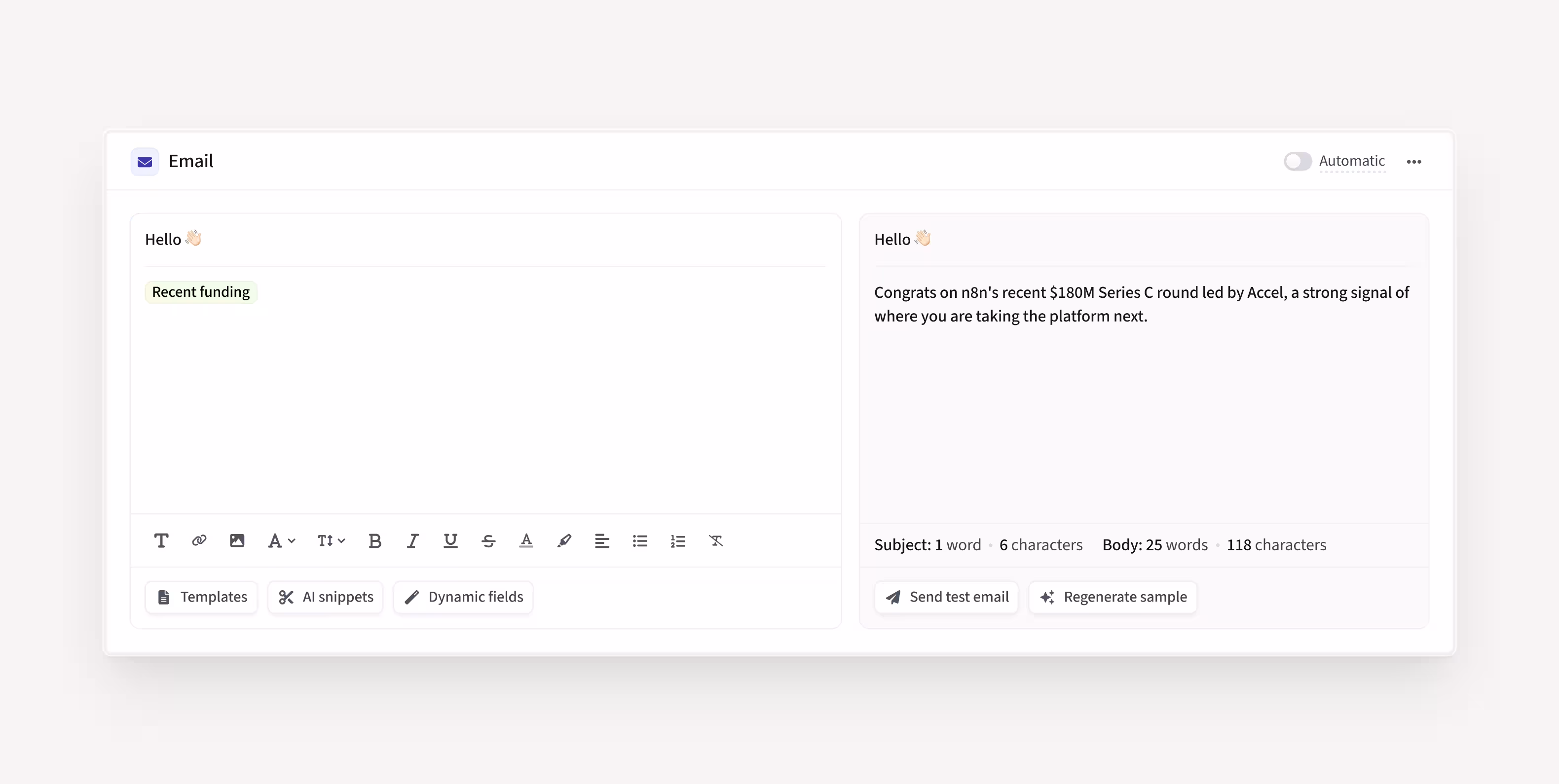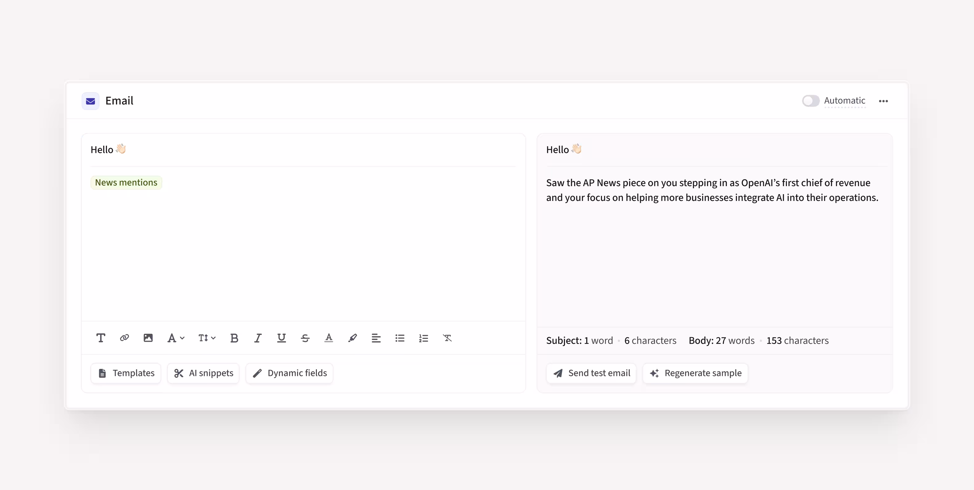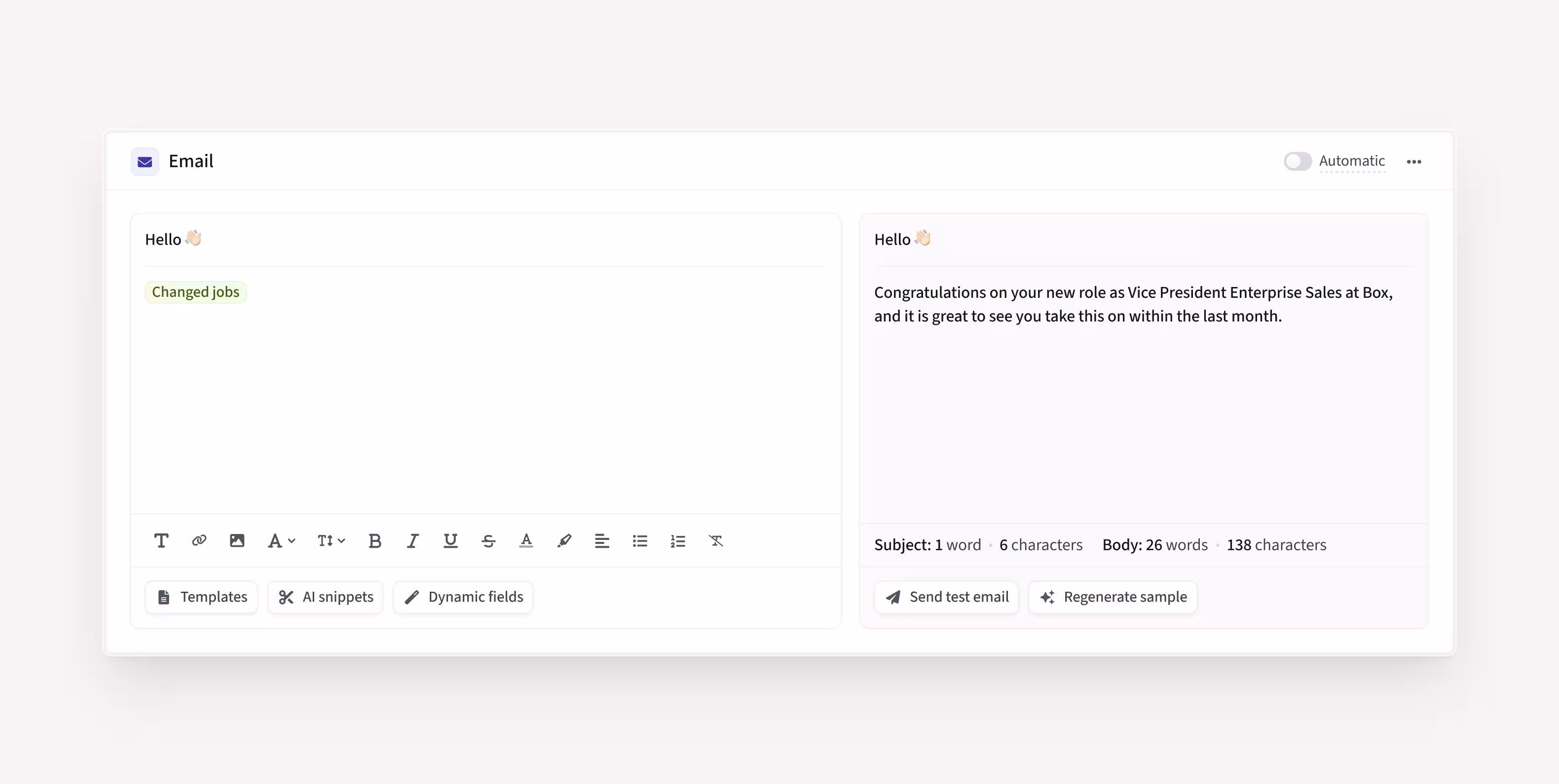 Check out all the ways AI Smart Snippets can help you personalize sales outreach at scale, automatically referencing funding, job changes, press mentions, and more, with minimal effort.