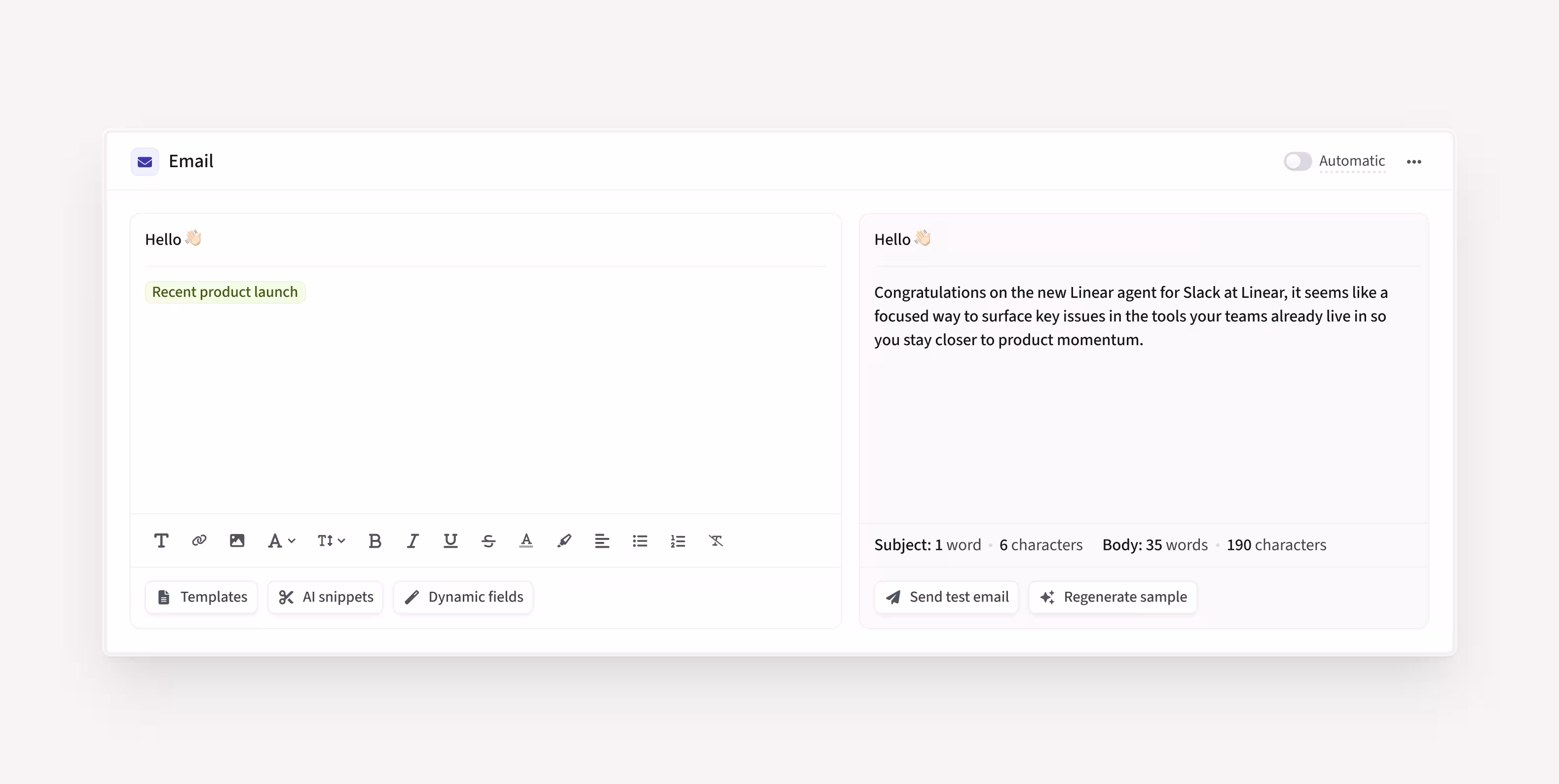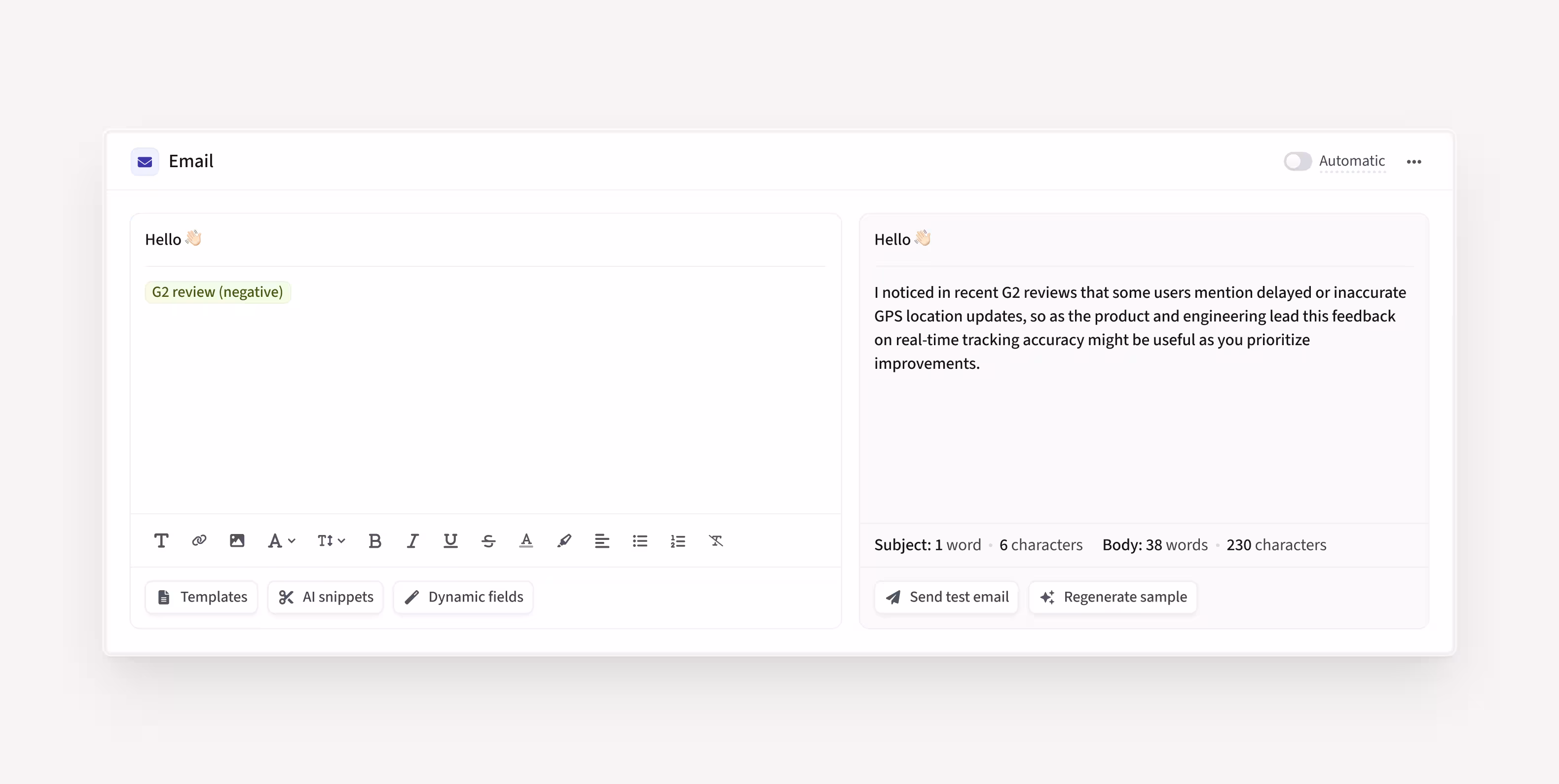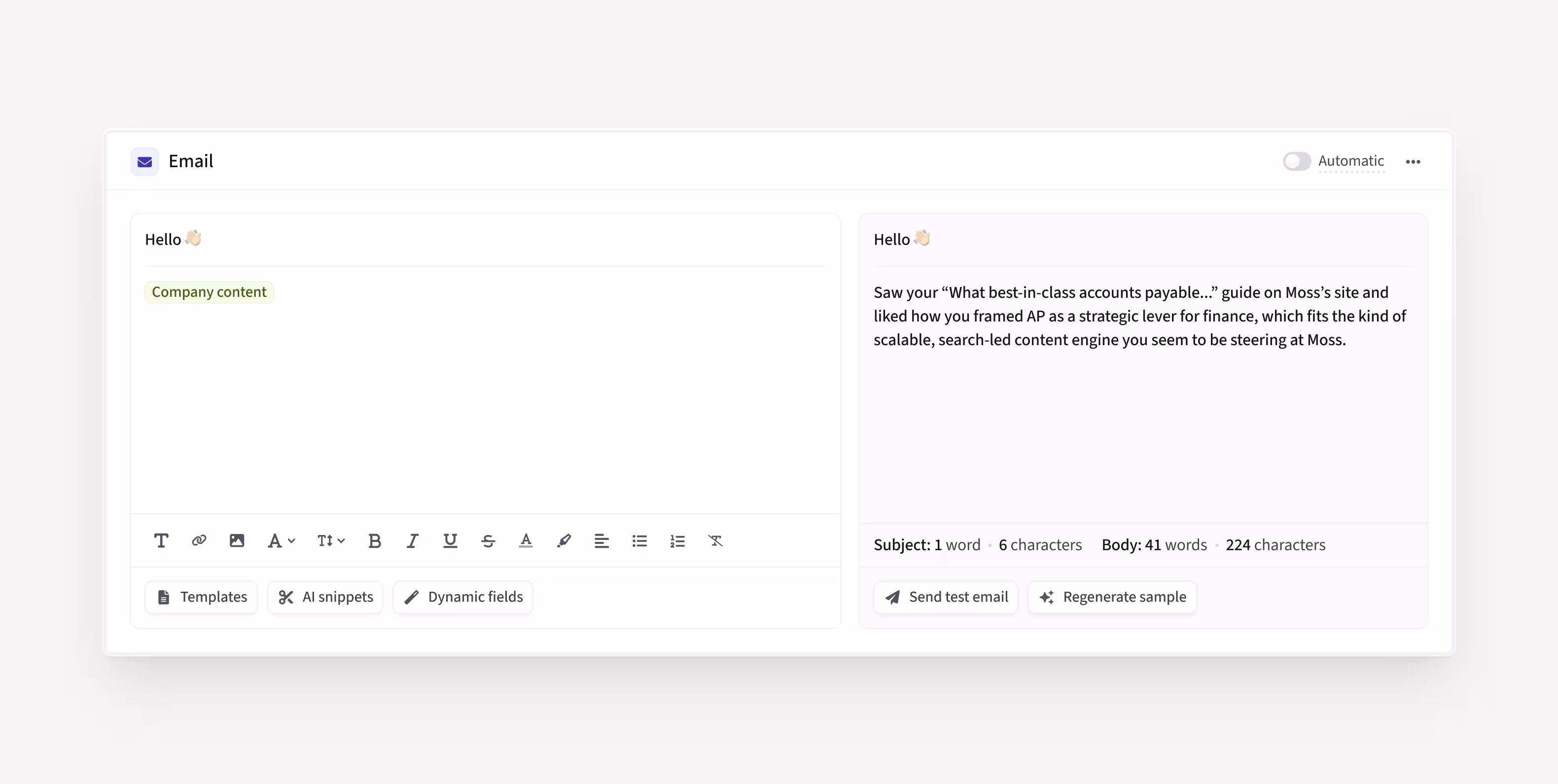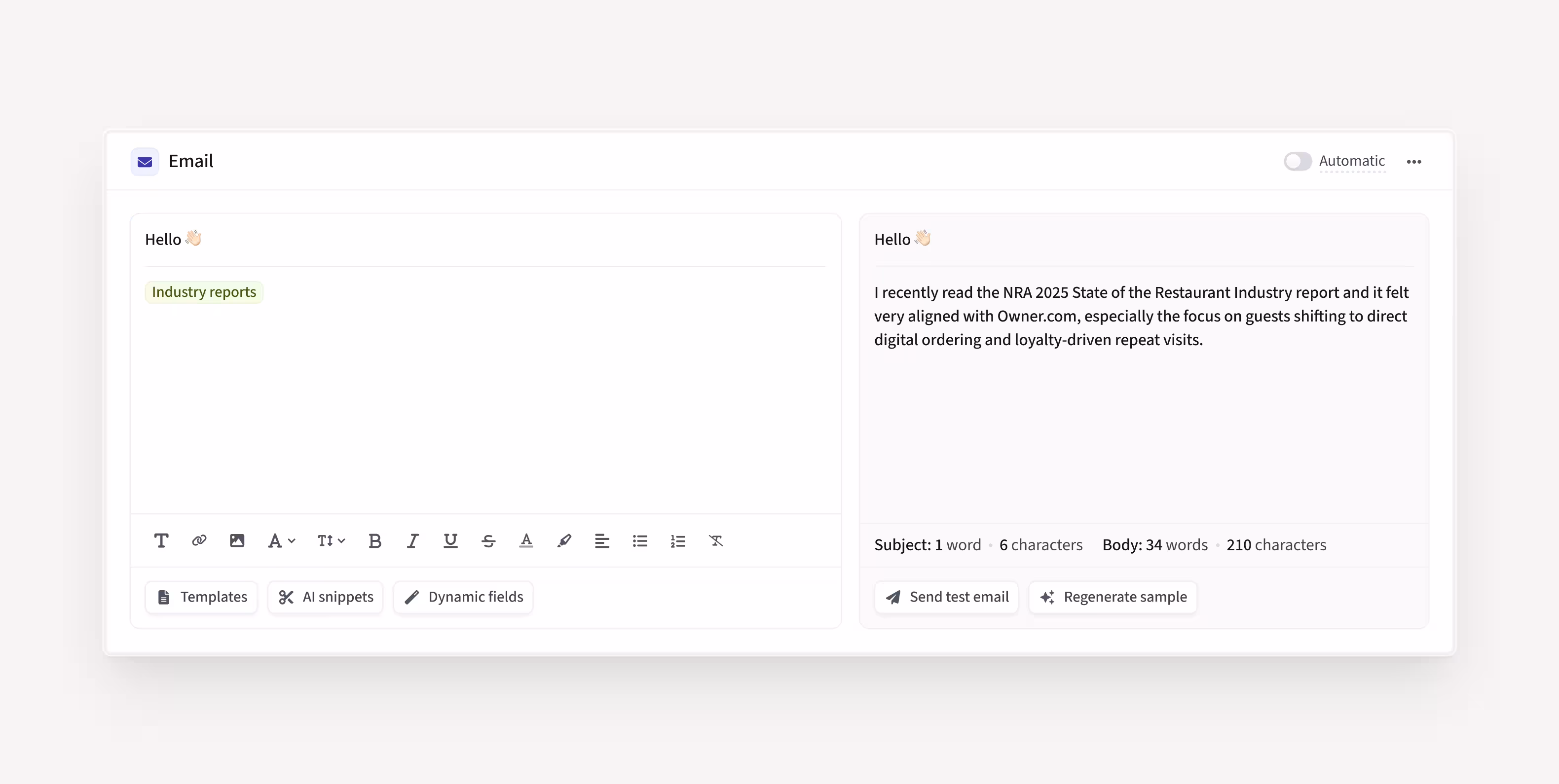 AI Smart Snippets transform static email templates into dynamic, personalized messages.