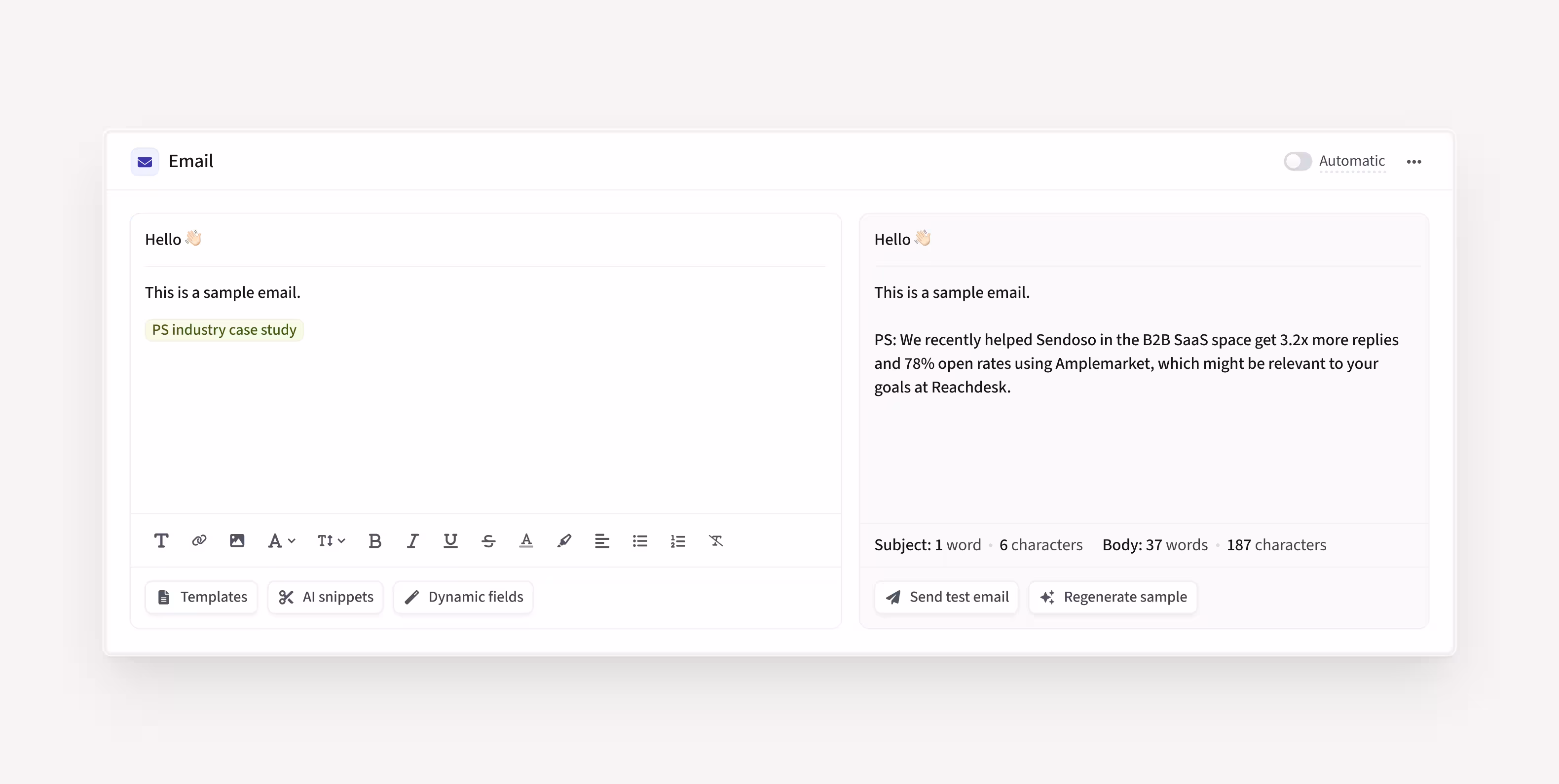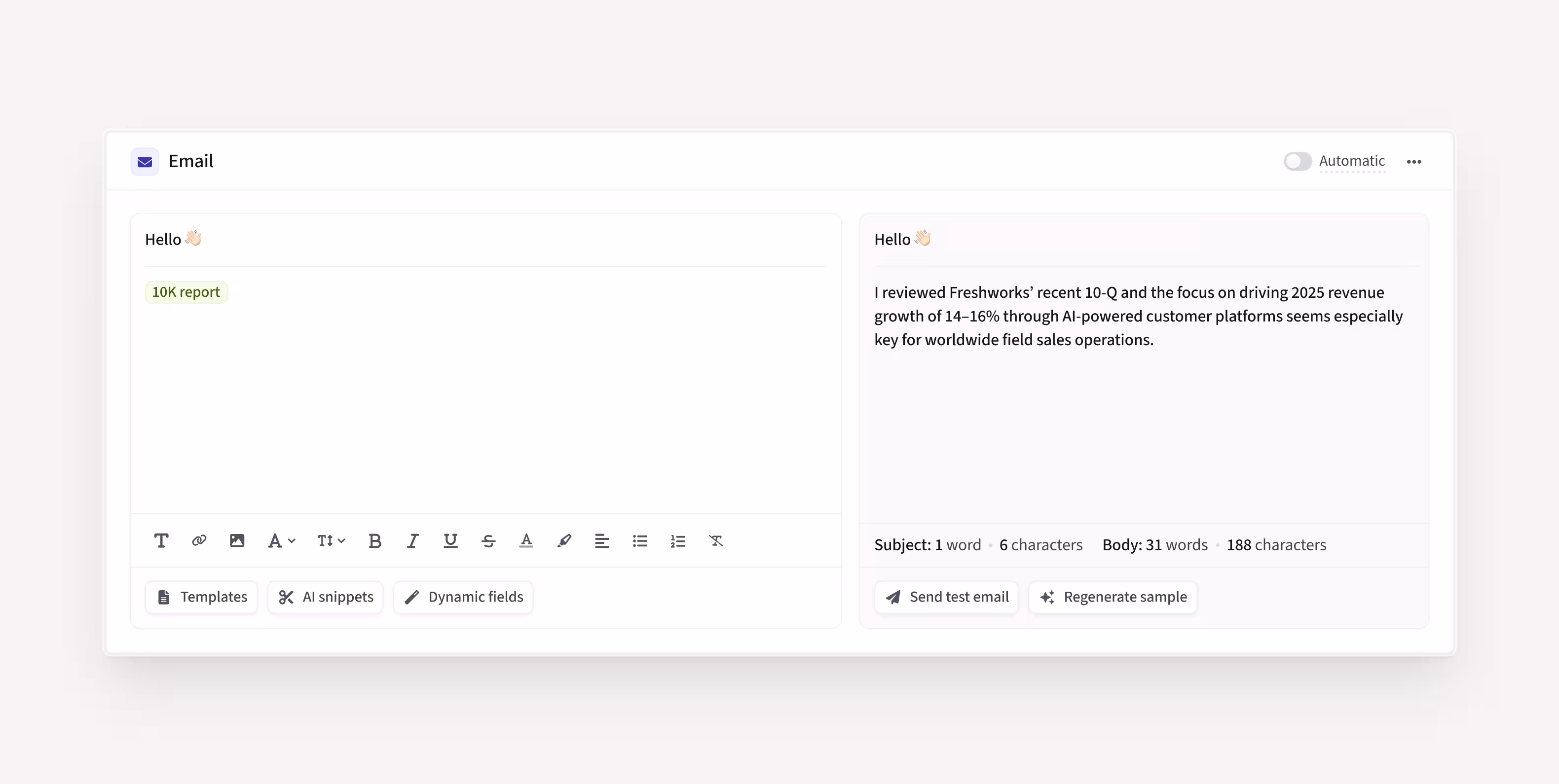 This enables your reps to send highly personalized emails with minimal effort.