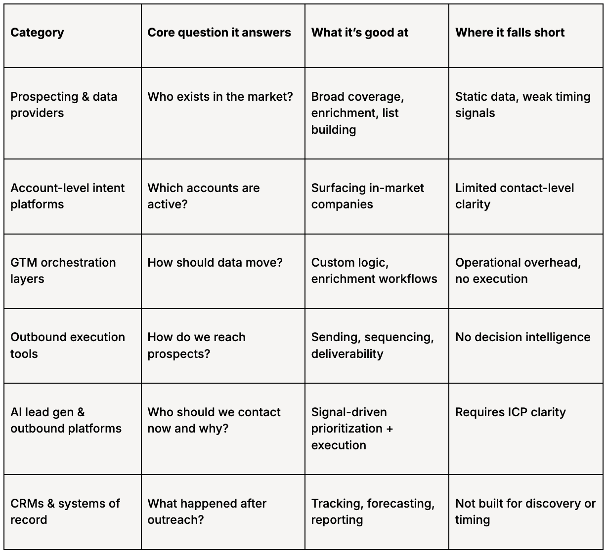 Most teams already have some combination of a CRM, a data provider, and an outbound tool.