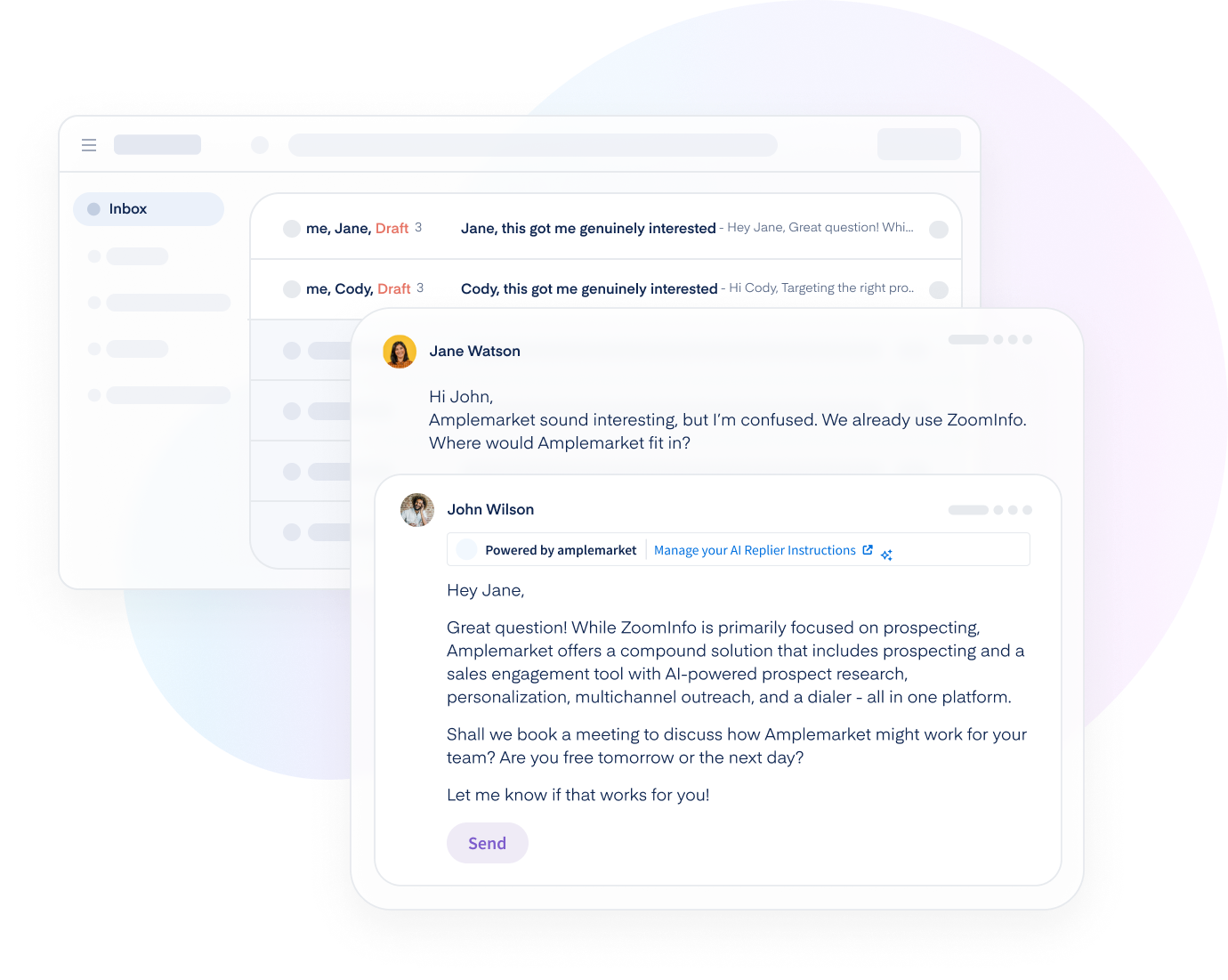 Amplemarket's AI Replier was built to help you win back as much of that time as possible so you can focus on what matters: closing more deals, faster.