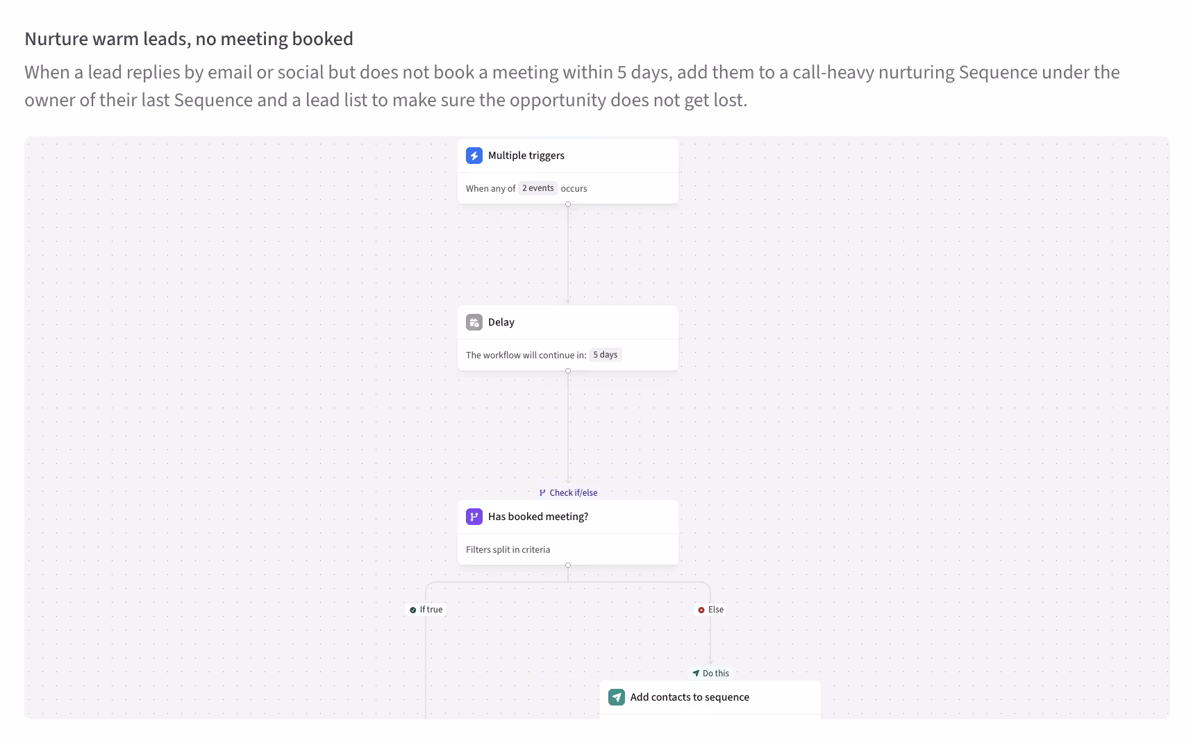 - Combine with intent signals. If the prospect is visiting your pricing page again, trigger immediately instead of waiting for the time threshold.